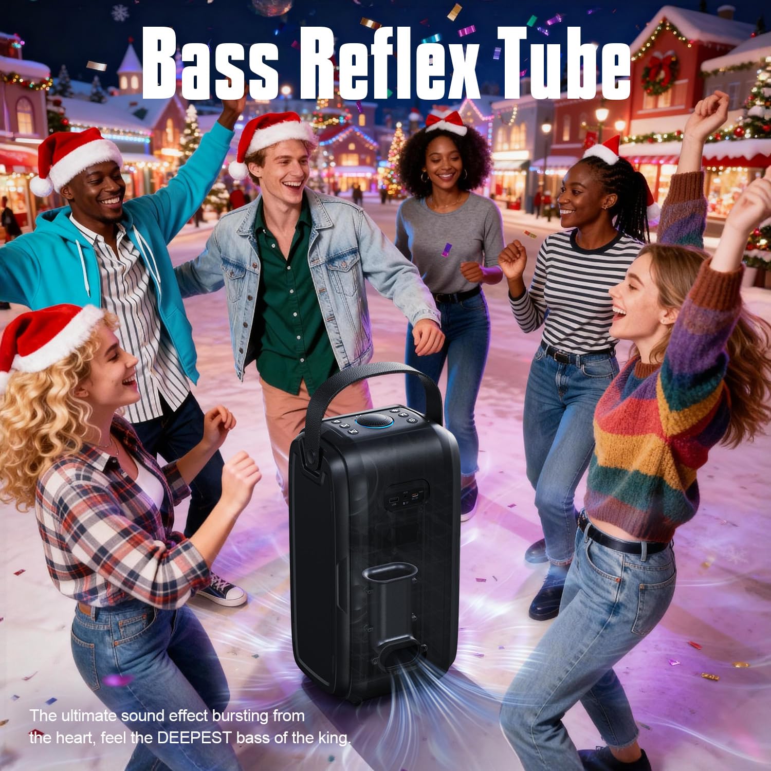 - 180W PEAK HIGH POWER NATURAL BASS REFLEX TUBE TECHNOLOGY: W-KING T9-2 180W PEAK bluetooth speaker adopts an advanced bass reflex tube to ensure deep and resonant bass, which enhances the overall audio experience, allowing us to enjoy a more dynamic and bodily Immersive sound. Additionally, the handle of the outdoor portable Bluetooth speaker allows you to carry it, and dance at any time easily, You’ll be the king of the stage.Great as a birthday, Christmas, or holiday gift for family or friends.