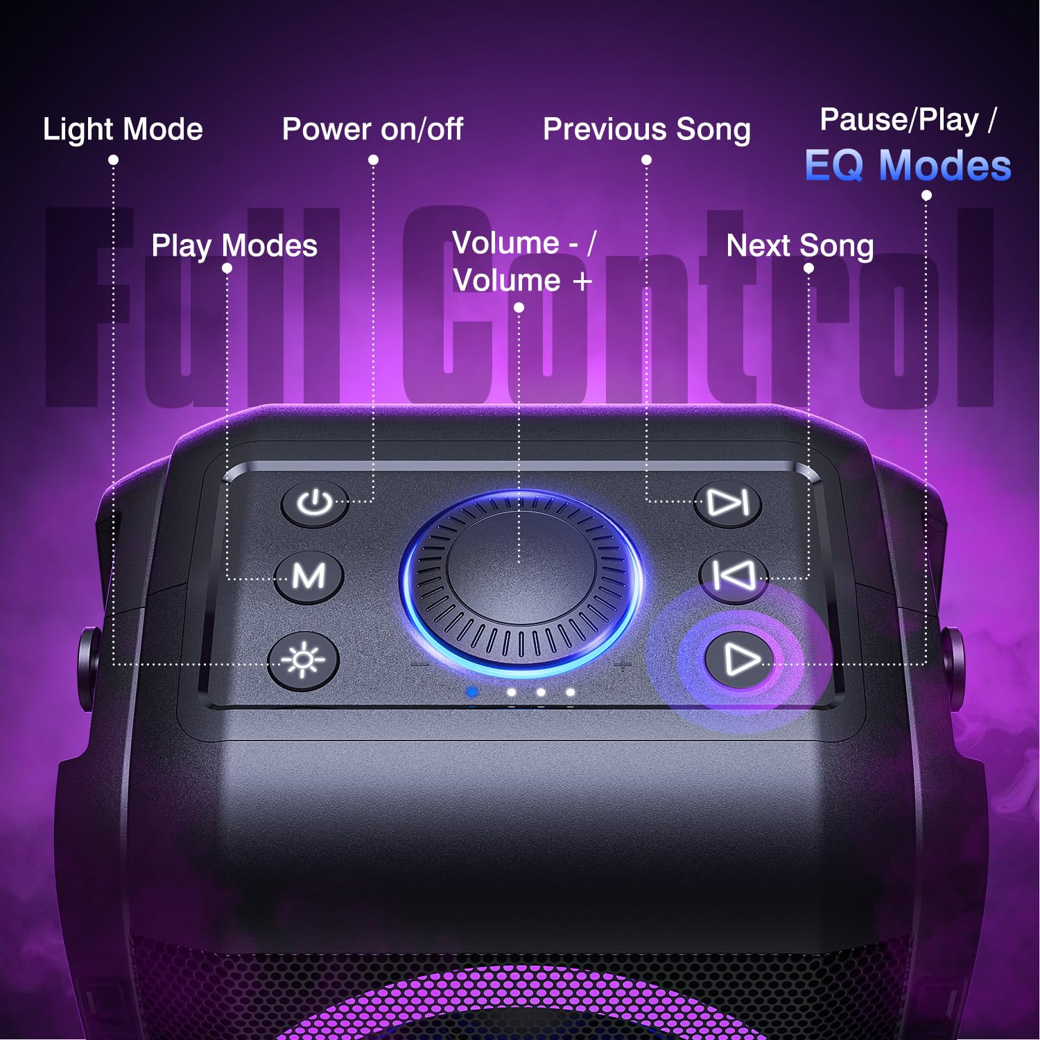 - VIBRANT MIXED COLOR LED LIGHTS & PARTY VISIBLE TUNES: Party bluetooth speaker portable wireless can switch different light rings according to the category of the song.The light ring has 7 different colors, and 6 light effects can be freely switched with the beat of the music. The portable speaker bluetooth wireless are rugged and sturdy, coupled with high-quality sound, to ensure a relaxed atmosphere at home or party, and enjoy the dual impact of vision and hearing, boosting more off your party.
